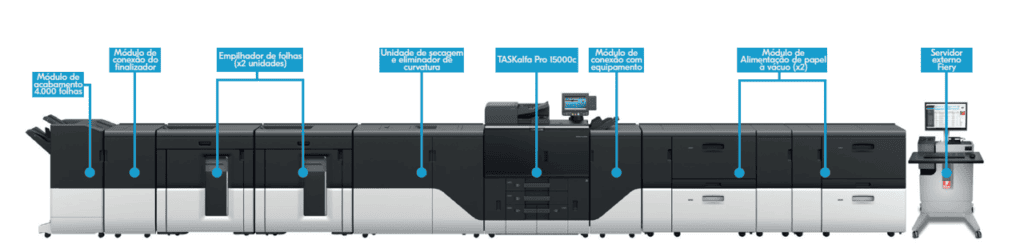 A Kyocera TASKalfa Pro 15000c redefine fronteiras ao unir produtividade e acessibilidade em uma impressora inkjet de produção de folha solta (sheet-fed) e alta velocidade. Ela oferece uma solução digital de excelente custo-benefício para aplicações transacionais, transpromocionais e de mala direta, com capacidade adicional para demandas em mídias especiais.